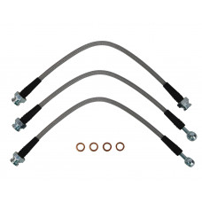 These extended brake lines are a direct fit and exceed all requirements of the Department of Transportation Motor Vehicle Standard MVSS-106. They come in a complete set of two front brake lines and one rear brake line along with four copper sealing washers and a mounting clip.